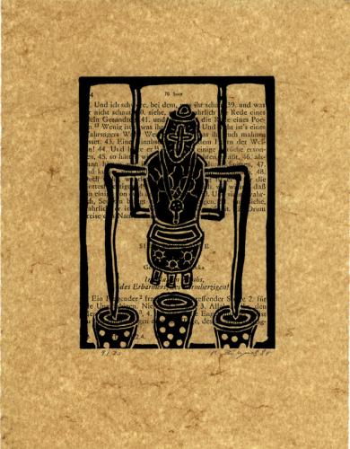 Peter Bömmels Heil uns1987 Katalog-Nr.: 414/0009/Boe statt 580 € nur 399 € # Folge von 5 Linolschnitten / marmoriertes und bedrucktes Markulaturpapier, Exemplar 9/30, 5 Blätter jeweils signiert, numeriert und datiert; 5 Blätter jeweils ca. 21 x 15 auf 35 x 27 cm. Jahresgabe des Kölnischen Kunstvereins. Kunstwerk zu Favoriten hinzufügen In den Warenkorb