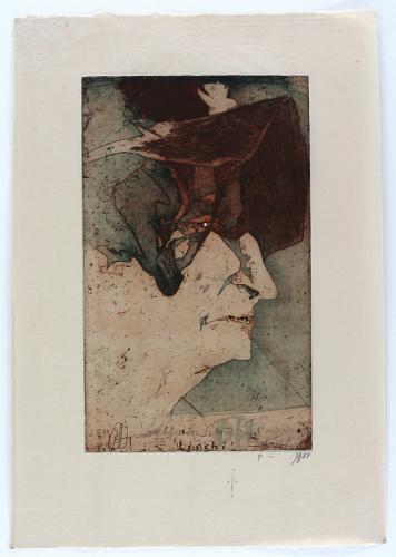 Farbradierung von zwei Platten in Rotbraun und Grün / chamoisfarbenes Japan, Auflage 100 + einige Probeexemplare, hier Probeexemplar außerhalb der Auflage, signiert, datiert und als "P" (Probe) bezeichnet, in der Platte zusätzlich signiert, datiert und betitelt; 46 x 27,9 auf 65,5 x 46 cm. Spielmann 6.